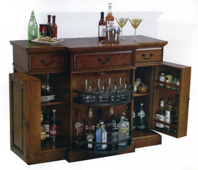 Группа распашных дверей этого Hide-A-Bar™ (скрытого бара) открывает просторный объём для хранения вина и алкоголя. По бокам бара находятся отделения для крепких напитков с регулируемыми по высоте полками. Отделения закрываются дверцами на внутренних частях которых находятся полки для хранения бутылок с крепким алкоголем. В центре бара - вращающаяся дверь для удобного хранения вина крепкого алкоголя и посуды. Столешница выполнена из наборных массивных реек с рустами по краям. Три верхних ящика служат для хранения посуды, барного текстиля и других предметов. Финишная отделка - цвет Indian Summer. Регулируемые ножки под каждым углом обеспечивают стабильность на неровных полах. Pad-Lock™ - держатели из металла с пластиковым покрытием фиксируют полки с максимальной надежностью. Дверь с замком для дополнительной безопасности. Высота 960 мм Ширина 7290 мм Глубина 540 мм